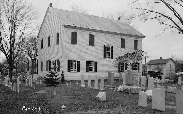 The image used is of the actual cemetery we visited. The old meeting house still stands.